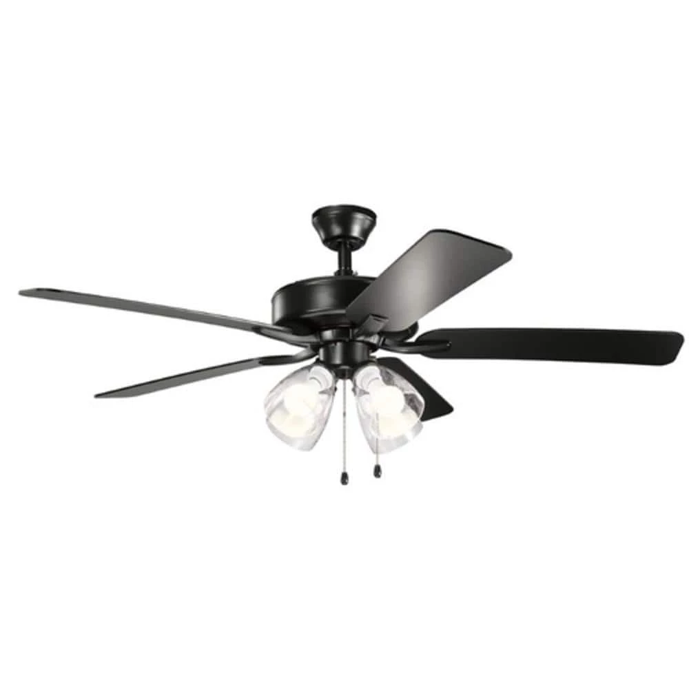 Brand new ๐ Kichler Lighting Basics Pro Premier 52W 4-Light 5-Blade Medium E-26 LED Ceiling Fan in Satin Black ๐คฉ